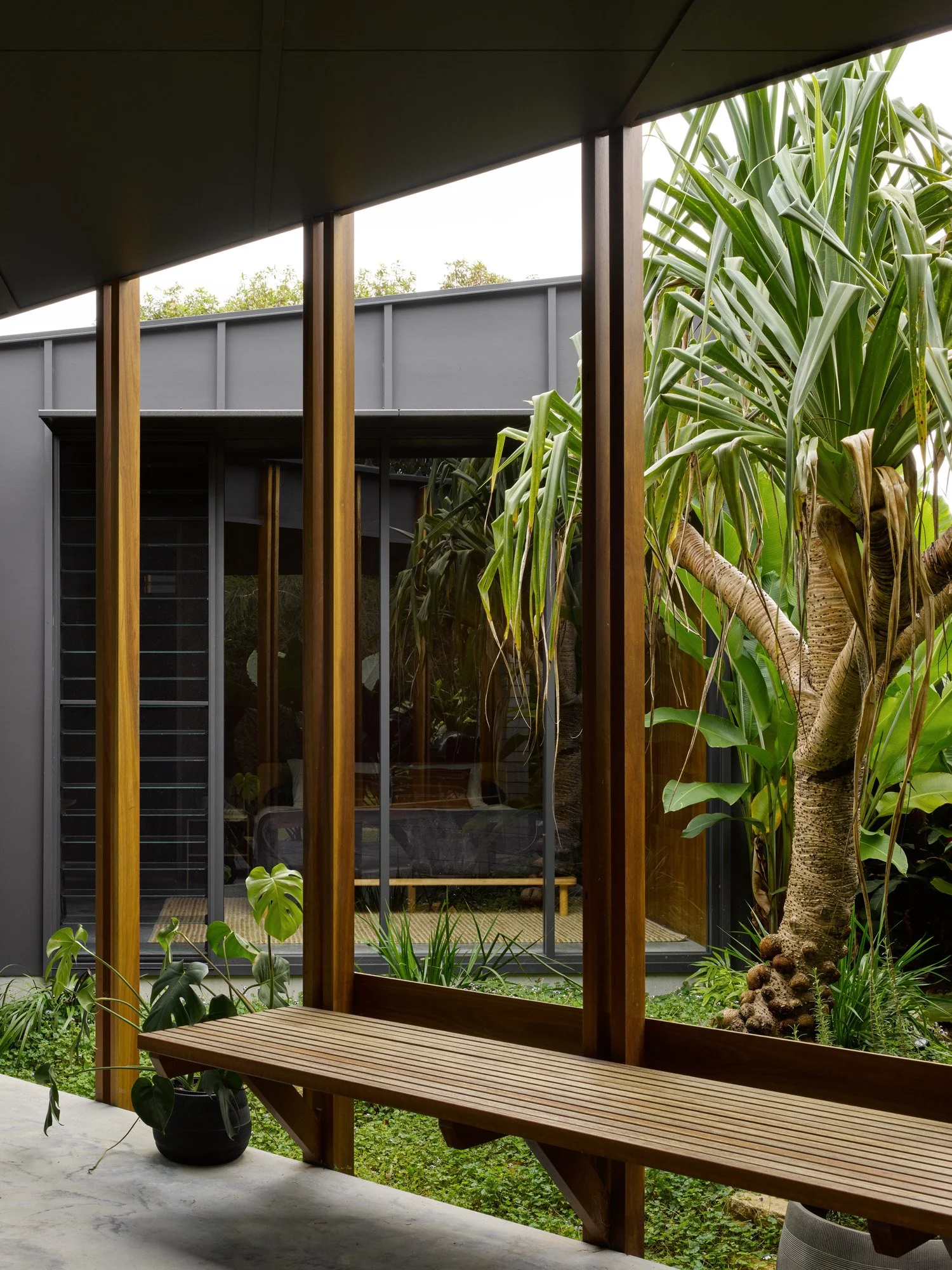 Muli Muli is a contemporary take on the Australian beach shack – a modest, low-maintenance, year-round holiday home, conceived with flexibility and durability at its heart. Tucked up against a coastal dune system providing a wild borrowed landscape, the best parts of the site have been preserved as external space and woven into the articulated ‘U’ shape floorplan. Three pavilions containing the various functions of the house are linked by a covered corridor with connections throughout the house to the lush subtropical landscaping maximised by large, glazed openings unimpeded by structural members. Clerestory windows and a raked ceiling in the living pavilion captures morning sun and vertical space. Afforded by its holiday house typology, Muli Muli rejects the prioritisation of internal space at the expense of all else, and instead seeks a simpler way of living within a smaller footprint.